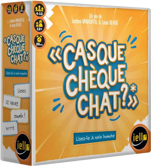 Casque Chèque Chat ? est un jeu d’ambiance pour 4 à 12 joueureuses. Dans ce jeu de société plein d’absurdité sonore, vos coéquipiers doivent vous faire deviner une expression connue en écrivant des mots sans aucun rapport… mais qui sonnent presque pareil. Ambiance délirante garantie entre amis ou en famille !